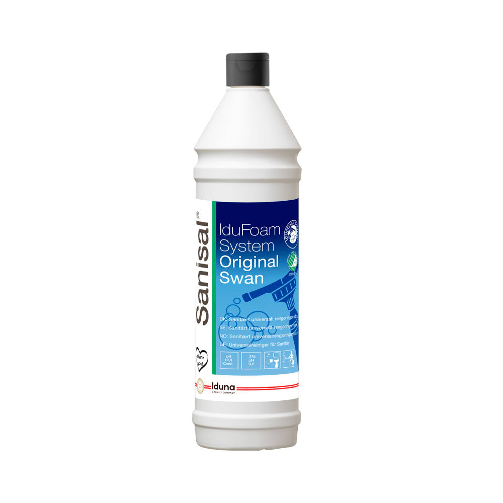 Sanisal Original er en del af det avancerede IduFoam System. Et svanemærket, universelt og alkalisk rengøringsmiddel udviklet til daglig rengøring af toiletter, sanitære installationer, fliser, porcelæn, corian, saunaer, dampbade, armaturer, travertin og vådrum. Produktet er særligt velegnet til brug i sundhedssektoren, institutioner, wellnessområder, virksomheder og professionelle rengøringsselskaber.