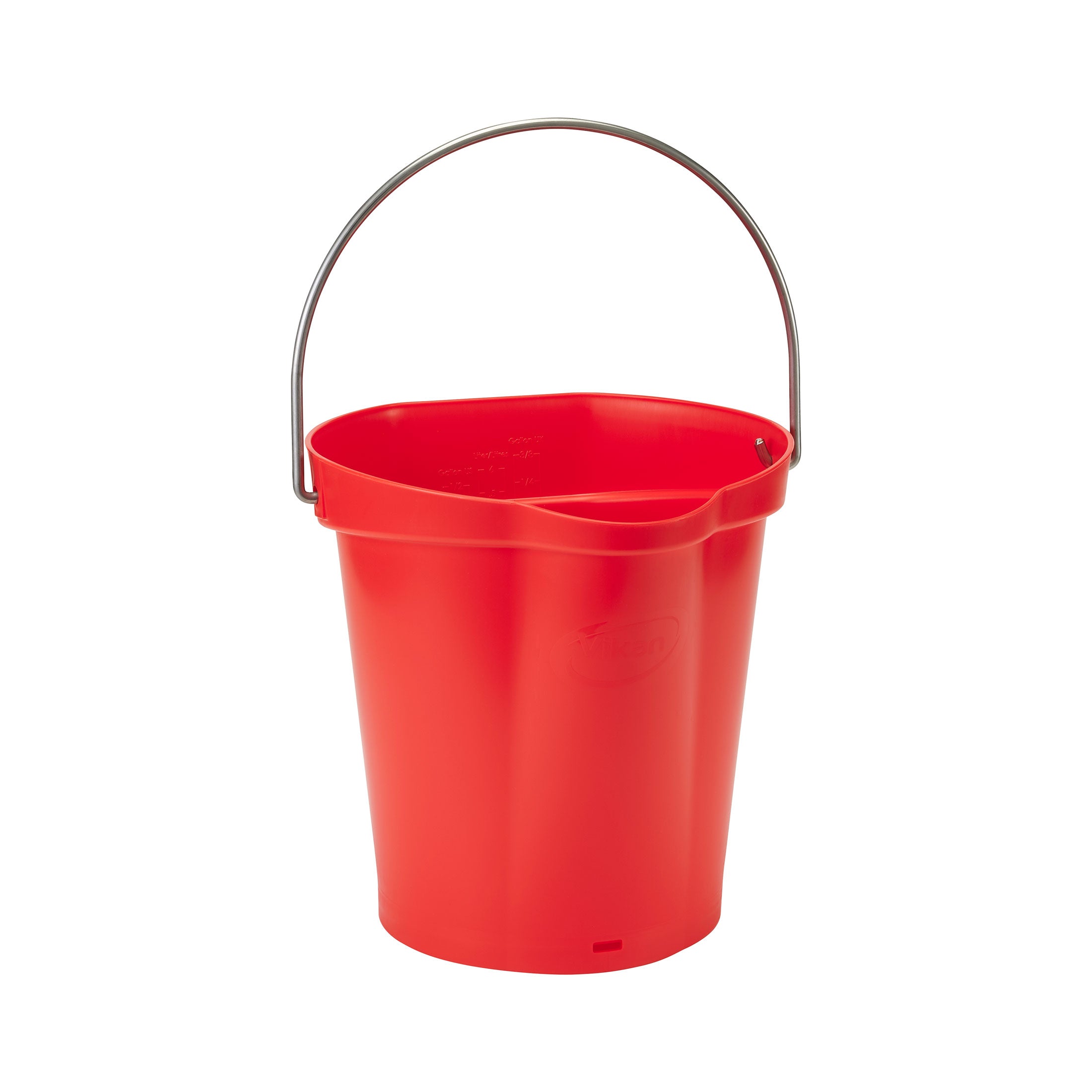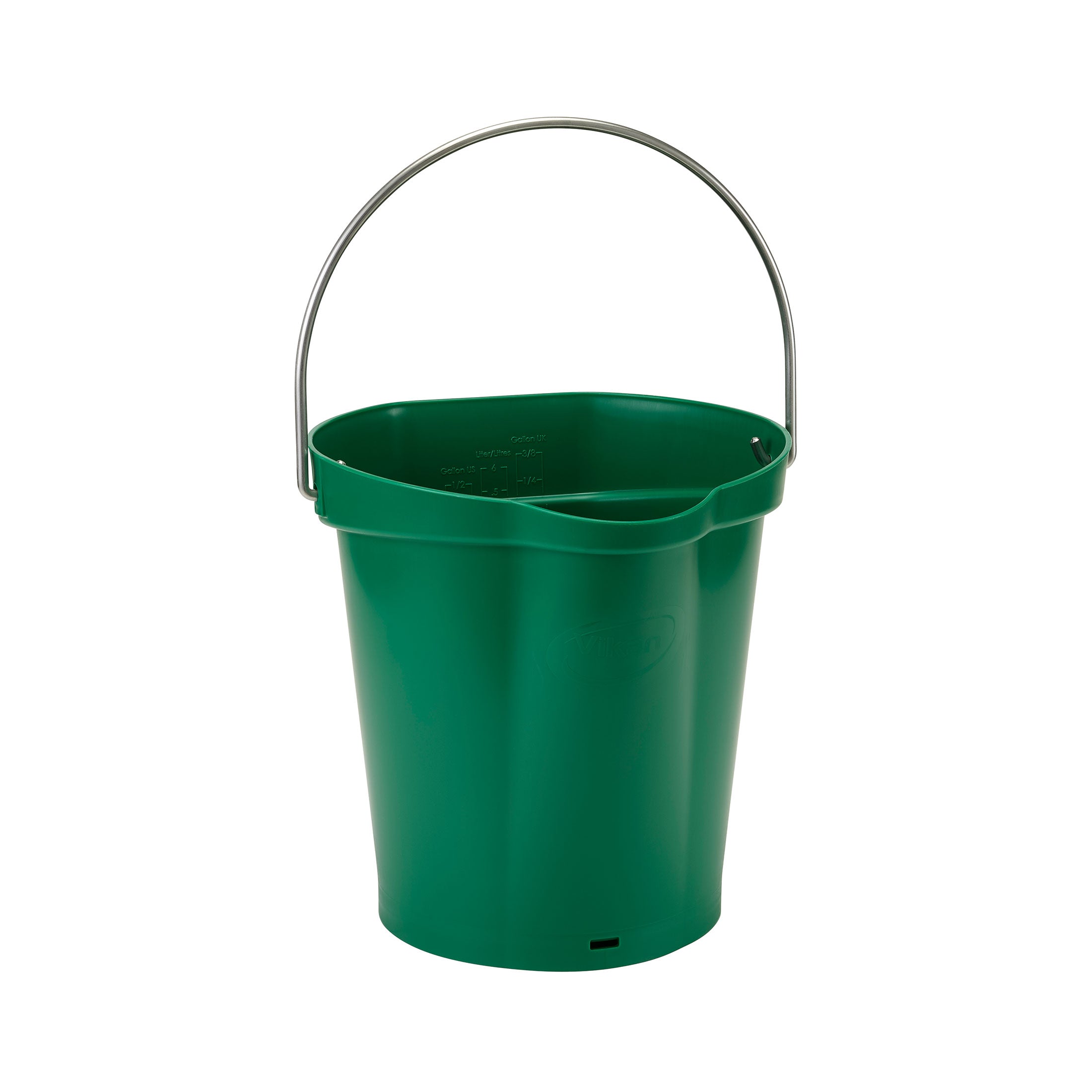 Denne robuste 6-liters spand er velegnet til både rengøring og opbevaring af fødevarer. Spanden har en bred, drypfri hældetud, et solidt håndtag i rustfrit stål, en hævet bund og en indvendig måleskala med forskellige måleenheder. Den flade side forhindrer spild.